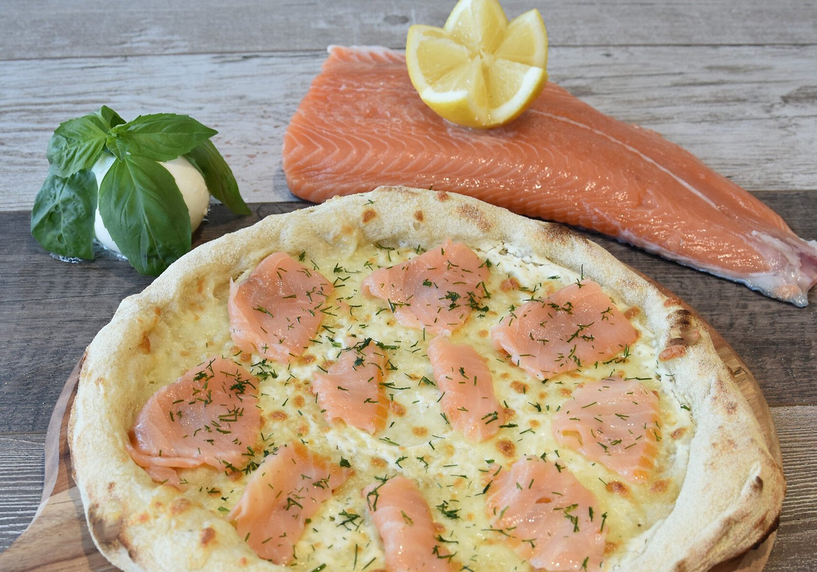 Mozarella fior di latte, duo de saumon sauvage du pacifique et saumon fumé, burratina crémeuse, citron